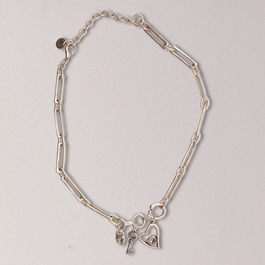 Handmade Hearts Crystal Pewter Necklace with 3 Charms