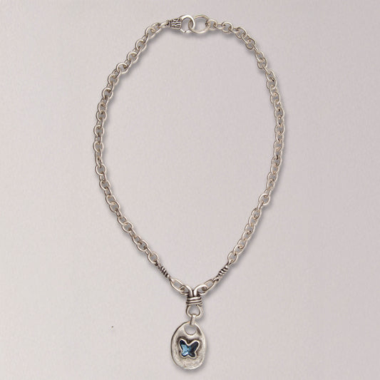Handmade Butterfly Blue Crystal Pewter Necklace