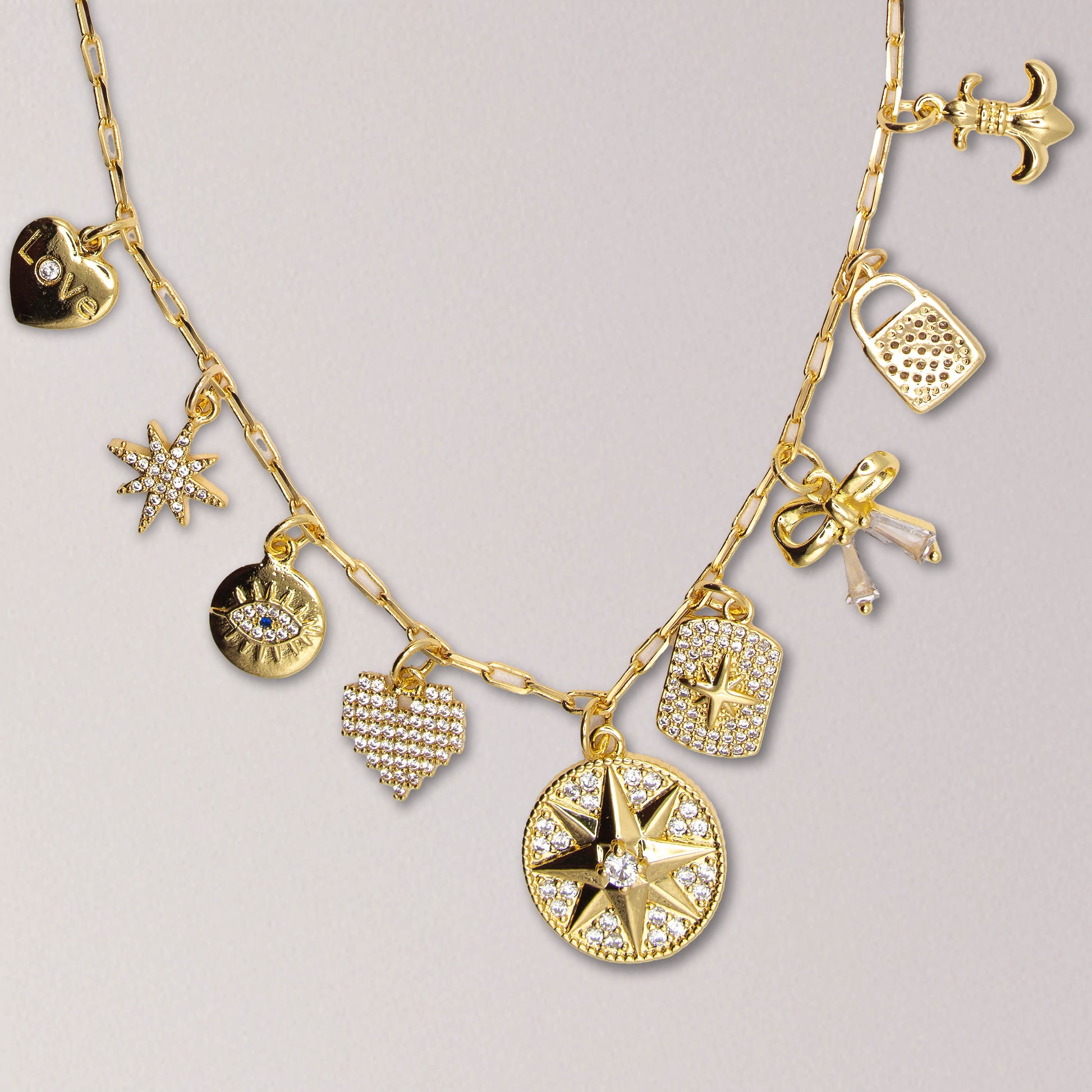 Each of these CZ-studded charms has been carefully crafted to add a unique dimension to this necklace, making it a truly one-of-a-kind piece.