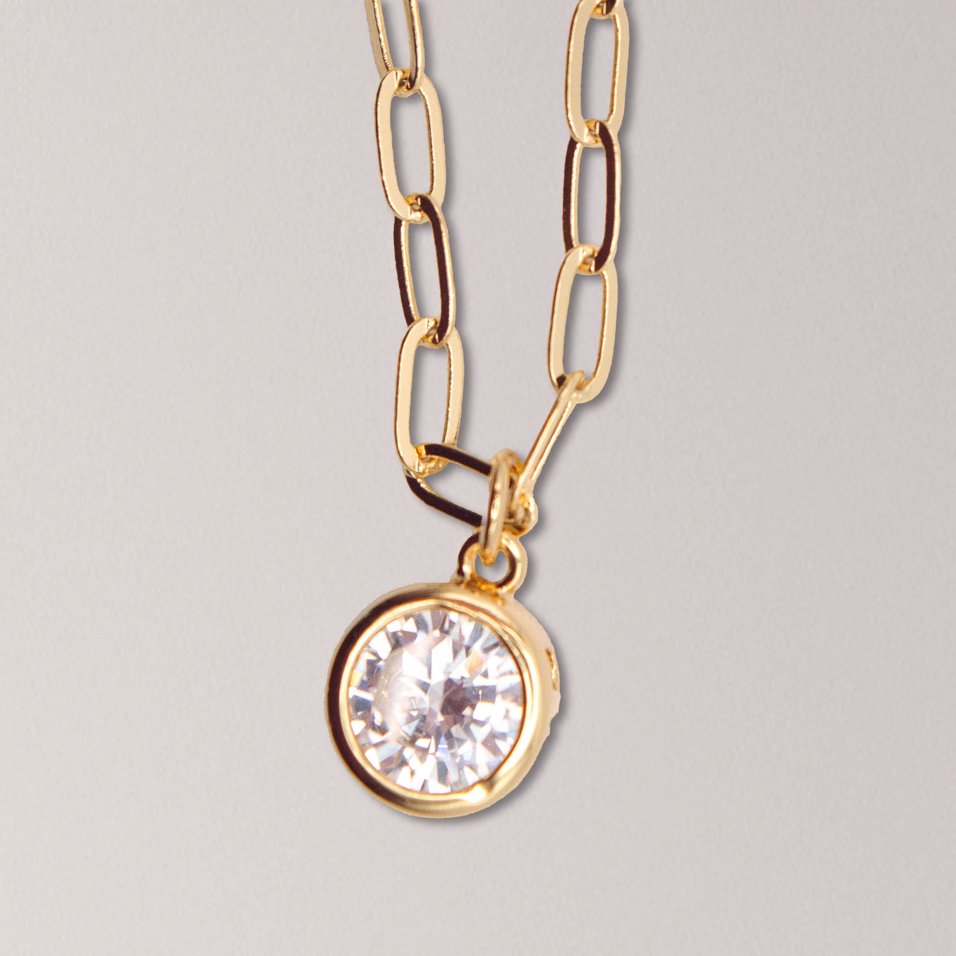 Elegant Gold Chain Necklace with Cubic Zirconia Pendant
