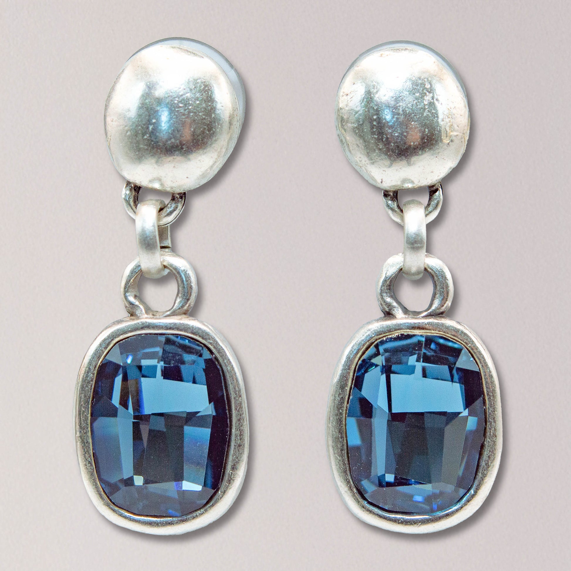 To keep your Handmade Sapphire Crystal Pewter Earrings looking their best, gently wipe them with a soft cloth after each wear. Ensure they are kept away from moisture and hars