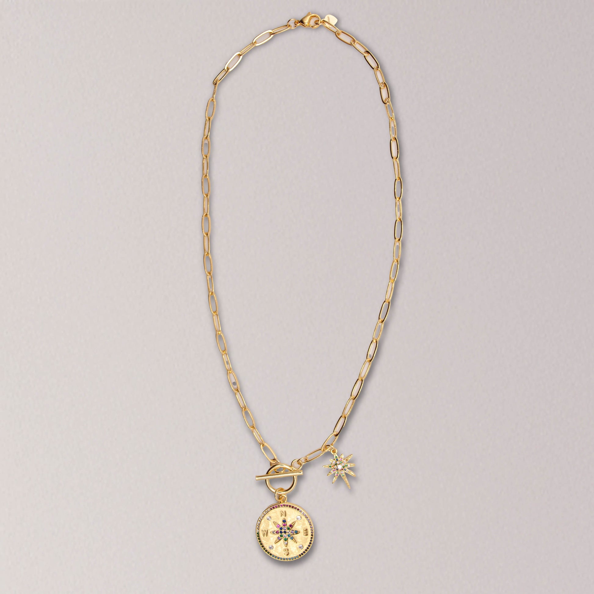 Embrace your sense of adventure and let the Compass & North Star Charmed Paperclip Necklace guide your style, illuminating your journey with every wear!