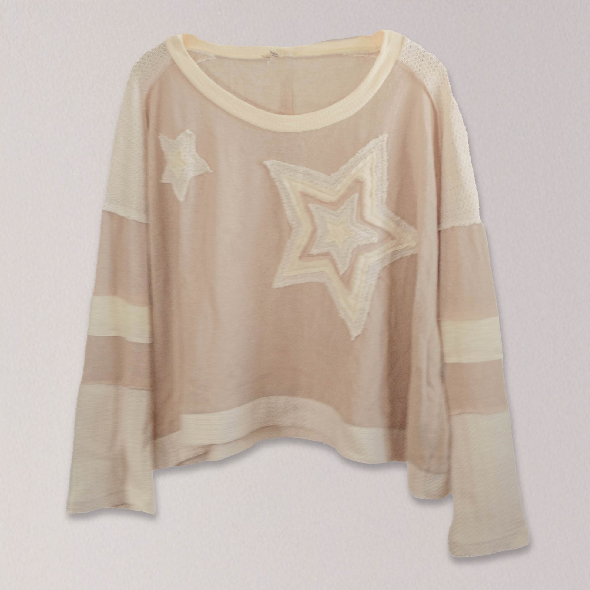 Shine with effortless style in our “Starstruck Comfort Crop,” proudly made in the USA! This oversized, round-neck blouse is the perfect blend of comfort and chic, featuring cozy long sleeves that wrap you in softness. The delightful star-shaped patchwork adds a whimsical and playful touch, ensuring your outfit stands out no matter the occasion.