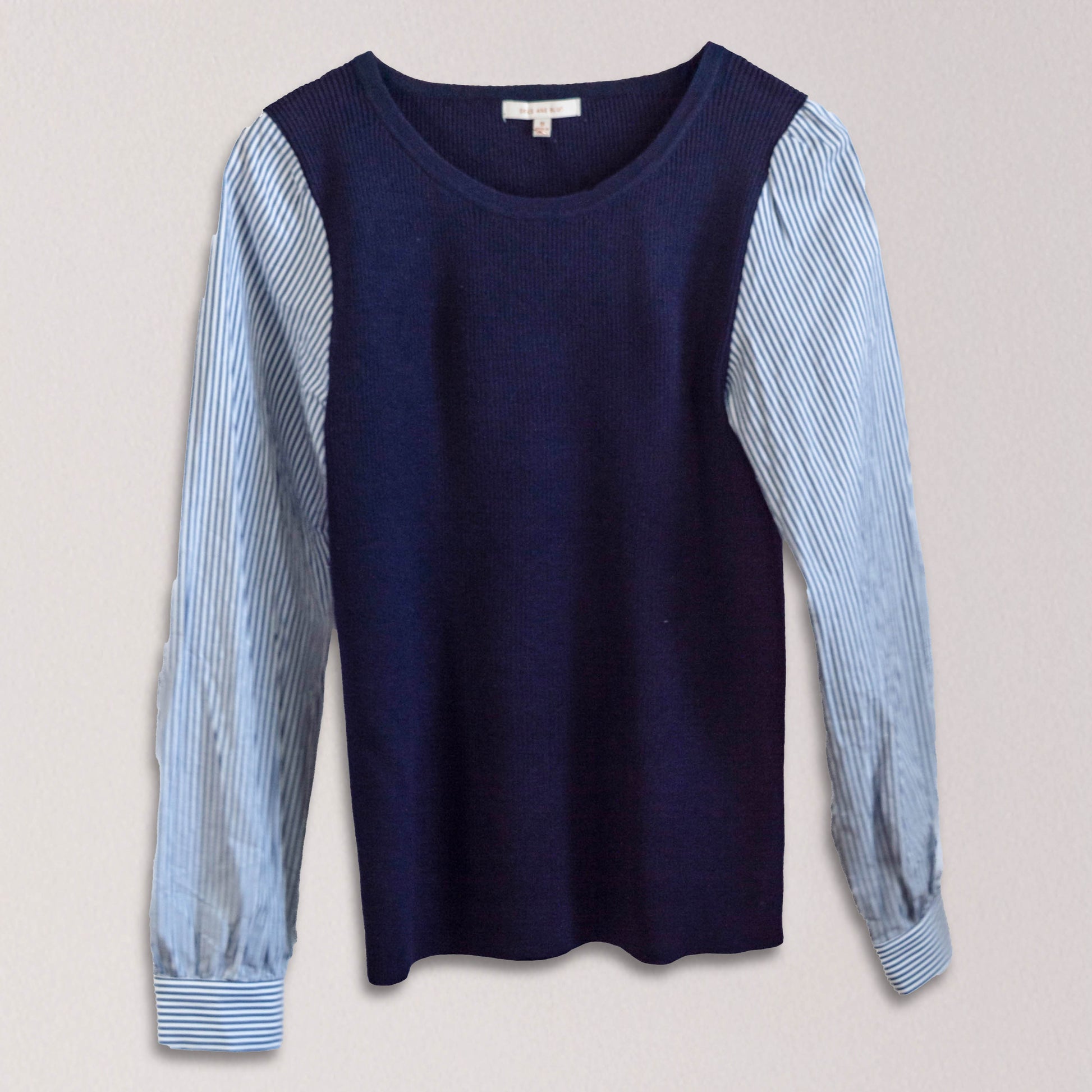 Add a playful twist to your knitwear collection with our Stripe Sleeved Sweater. Crafted from an ultra-soft blend of cozy materials, this chic sweater showcases eye-catching stripe detailing on the sleeves, infusing your wardrobe with a burst of color and modern sophistication.